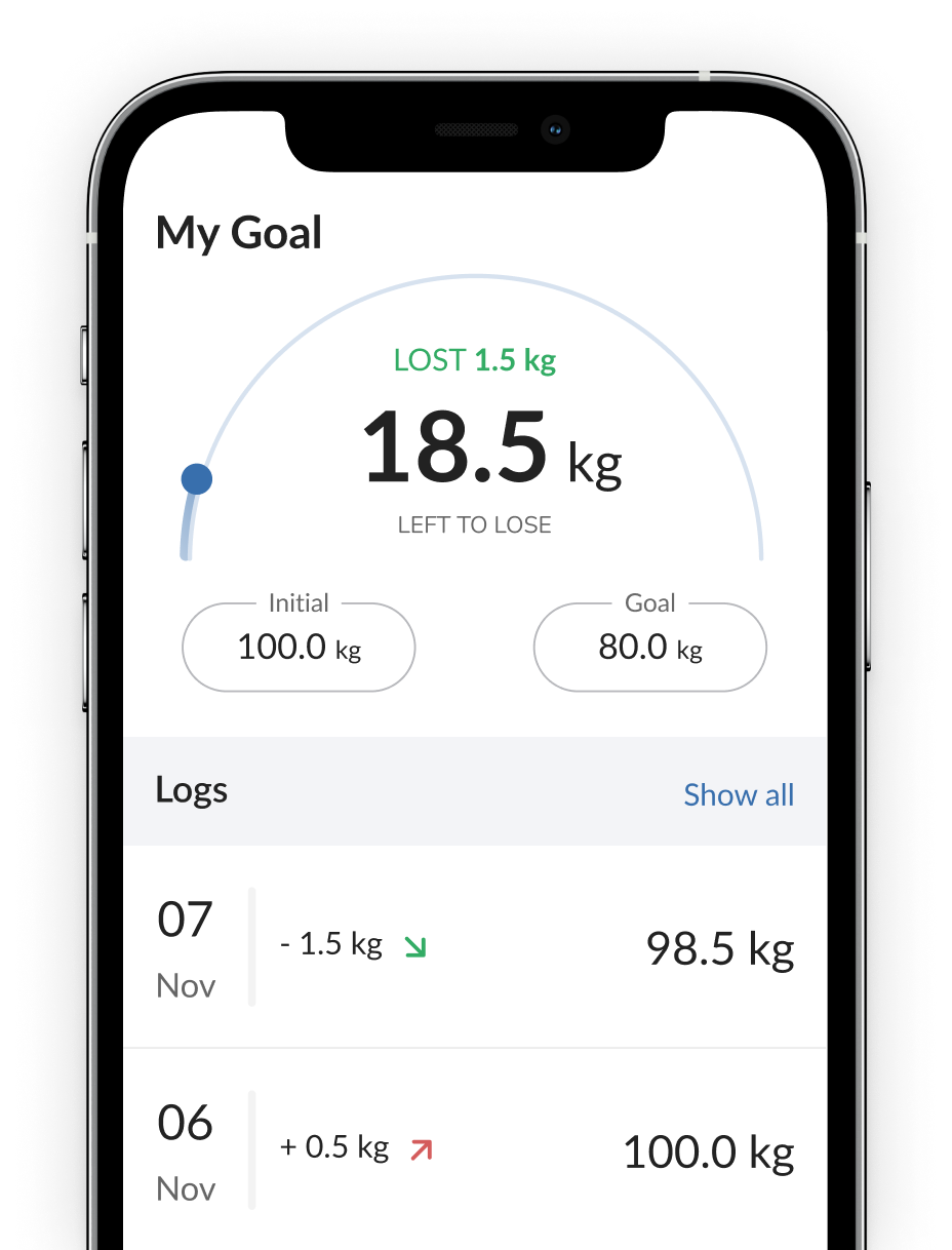 In the app, you have the weight history always at a glance so you are able to keep track on your weight to analyse your progress.